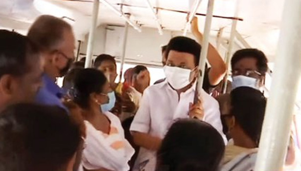 அப்போது தியாகராயா நகரில் இருந்து கண்ணகி நகருக்கு மாநகர பஸ் ஒன்று வந்தது. அந்த பஸ்சில் மு.க.ஸ்டாலின் ஏறி அதில் பயணம் செய்த பெண்களிடம் இலவச பயணம் குறித்து விசாரித்தார்.