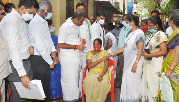 ஒவ்வொரு வீடாக சென்று தடுப்பூசி செலுத்திக் கொண்டீர்களா? என்று கேட்டார். இன்னும் தடுப்பூசி செலுத்தாதவர்களிடம், ஏன் தடுப்பூசி செலுத்திக் கொள்ளாமல் இருக்கிறீர்கள்? உடனே தடுப்பூசி செலுத்திக் கொள்ளுங்கள் என்று தெரிவித்தார்.