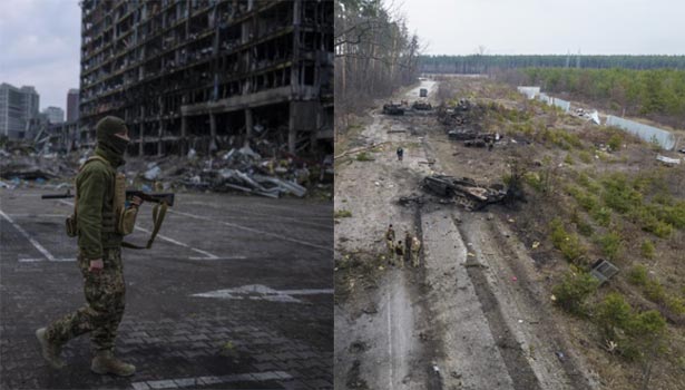 கீவ்வை சுற்றியுள்ள நகர்ப்பகுதியில் இருந்து ரஷிய படைகள் வெளியேறியதையடுத்து அப்பகுதிகளை உக்ரைன் ராணுவத்தினர் தங்களது கட்டுப்பாட்டுக்குள் கொண்டு வந்தனர்.