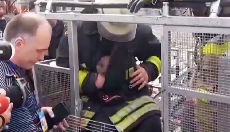 உக்ரைனின் போரோடியங்கா நகரில் ரஷ்ய படைகள் நடத்திய தாக்குதலில், சேதமடைந்த ஒரு அடுக்குமாடி கட்டிடத்தில் சிக்கித் தவித்த பூனையை ஏணி மூலம் தீயணைப்பு வீரர்கள் பத்திரமாக மீட்டனர்.