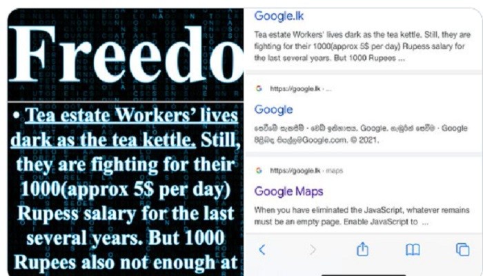 உண்மையில் சுதந்திரம் கிடைத்ததா? என கேள்வியுடன் google.lk இணையம் முடக்கப்பட்டுள்ள நிலையில் சில .lk இணையதளங்கள் செயற்பாடுகள் தற்போது முழுமையாக முடக்கப்பட்டுள்ளது.