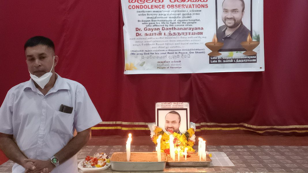 கொரோனா தொற்றினால் உயிரிழந்த வைத்தியர் கயான் டந்தநாராயணவிற்கு வவுனியாவில் இன்று (07) அஞ்சலி செலுத்தப்பட்டது.