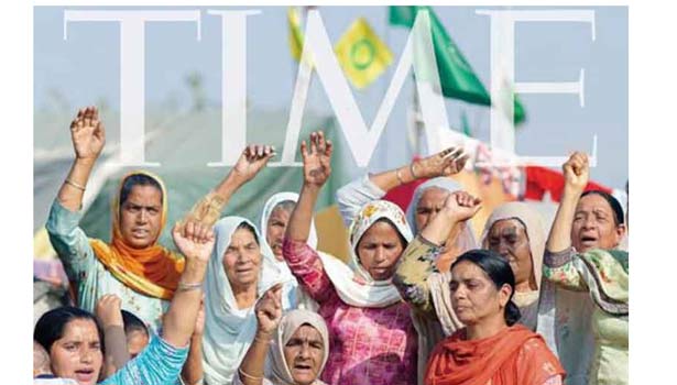 இந்நிலையில், பிரபல அமெரிக்க இதழான டைம் பத்திரிகையின் மார்ச் மாதத்திற்கான இதழின் அட்டைப்படத்தில் டெல்லி திக்ரி எல்லையில் விவசாயிகள் போராட்டத்தில் ஈடுபட்டுள்ள பெண்களின் படம் இடம்பெற்றுள்ளது. விவசாயிகள் போராட்டத்தின் முன்னணி வீரர்கள் என குறிப்பிடப்பட்டு இந்தப் படம் வெளியாகியுள்ளது.