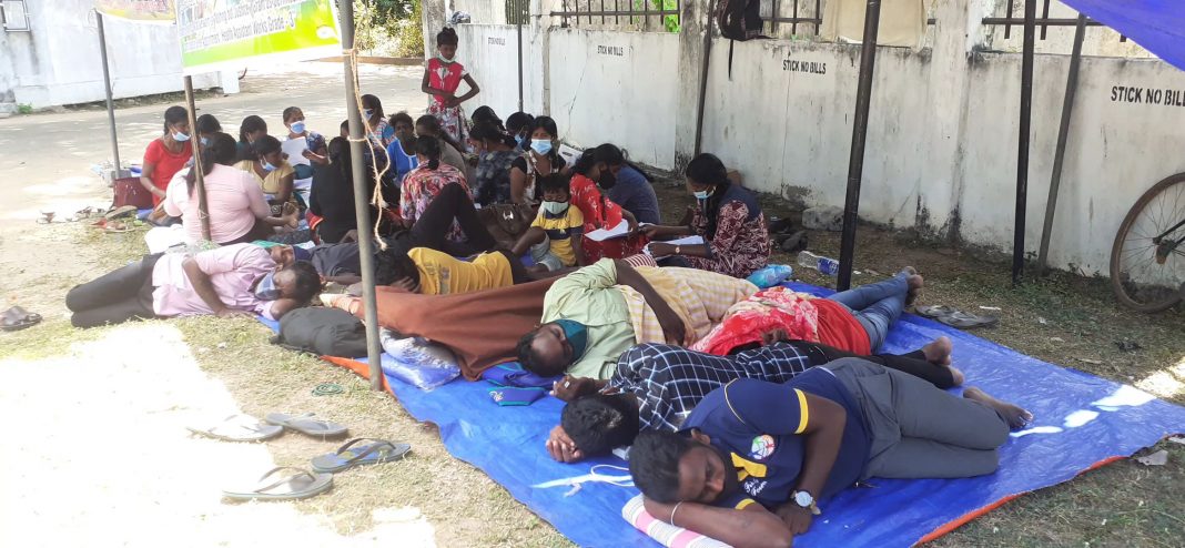 வடக்கு மாகாண ஆளுநர் செயலகத்திற்கு முன்னால் தொடர் போராட்டத்தில் ஈடுபட்டுவரும் வடக்கு மாகாண சுகாதார தொண்டர்களின் உணவு தவிர்ப்பு போராட்டம் 5 வது நாளாக இன்றும் தொடர்கின்றது.