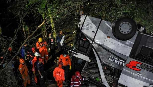 இந்தோனேசியாவில் மேற்கு ஜாவா மாகாணத்தில் சுபாங் என்ற இடத்தில் ஒரு இஸ்லாமிய பள்ளி உள்ளது. அந்தப் பள்ளியின் மாணவர்கள், ஆசிரியர்கள், பெற்றோர்கள், டாசிக்மலாயா மாவட்டத்தில் உள்ள புனித தலத்துக்கு நேற்று முன்தினம் சென்று விட்டு பஸ்சில் திரும்பிக்கொண்டிருந்தனர்.