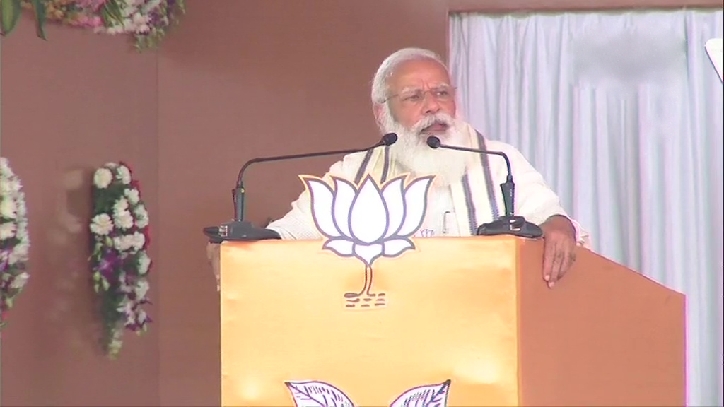 இந்நிலையில் மதுரையில் நடைபெற்ற பாஜக – அதிமுக தேர்தல் பிரச்சார பொதுக்கூட்டத்தில் கலந்து கொண்ட பிரதமர் மோடி, “வெற்றிவேல், வீரவேல். நல்லா இருக்கீங்களா? மதுரை வந்ததில் மிக்க மகிழ்ச்சி என தமிழில் பேசி உரையை தொடங்கினார் . தொடர்ந்து பேசிய அவர், “தமிழ் பண்பாட்டின் முக்கிய மையமாக மதுரை திகழ்கிறது . புண்ணிய பூமியாக விளங்குகிறது.உலகத்தின் தொன்மை மொழியான தமிழை, சங்கம் வைத்து வளர்த்தது மதுரை . மறைந்த தென் மாவட்ட தலைவர்கள் அனைவருக்கும் மரியாதை செலுத்துகிறேன். 1980ல் எம்ஜிஆர் ஆட்சியை மத்தியில் இருந்த காங்கிரஸ் கட்சி கலைத்தது.அப்பொழுது தென் தமிழக மக்கள் எம்.ஜி.ஆருக்கு உறுதுணையாக இருந்தனர்.எம்.ஜி.ஆர் நடிப்பில் வெளிவந்த மதுரை வீரன் படத்தை யாராலும் மறக்க முடியாது” என்றார்.