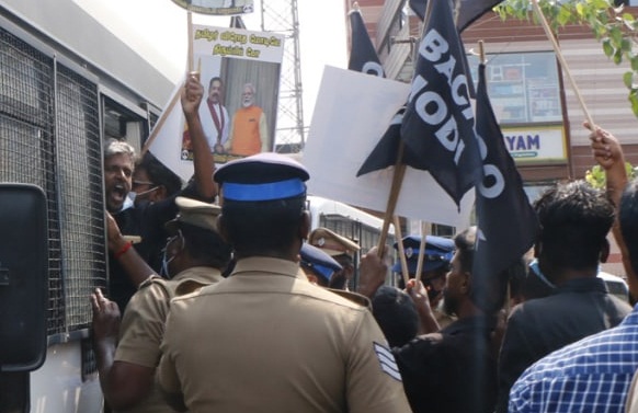 கோவையில் பிரதமர் வருகைக்கு எதிர்ப்பு தெரிவித்து கருப்புகொடி காட்டி, போராட்டத்தில் ஈடுபட்ட தந்தை பெரியார் திராவிடர் கழகத்தினரை போலீசார் கைதுசெய்தனர்.