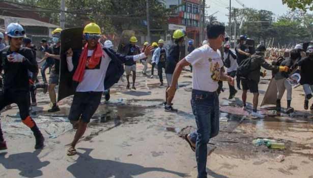 அந்நாட்டின் தலைவர் ஆங்சான் சூகி உள்ளிட்ட முக்கிய தலைவர்கள் கைது செய்யப்பட்டுள்ளனர். ராணுவ ஆட்சிக்கு எதிராக பொதுமக்கள் தொடர்ந்து போராட்டம் நடத்தி வருகிறார்கள். போராட்டத்தை ஒடுக்க ராணுவம் துப்பாக்கி சூடு உள்ளிட்ட அடக்கு முறைகளை கையாண்டு வருகிறது.
