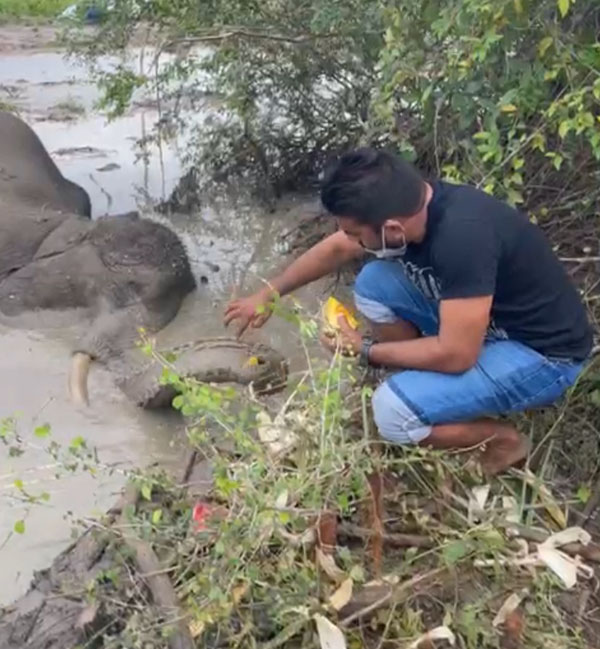 இதனையடுத்து குறித்த விடயம் தொடர்பில் வனவிலங்கு துறையினருக்கு அறிவிக்கப்பட்டிருந்தது. அங்கு சென்ற வனவிலங்கு துறையினர், கால்நடை வைத்திய அதிகாரிகள் யானைக்கு சிகிச்சையளித்தனர்.