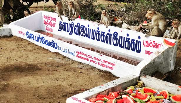 இந்நிலையில், குரங்குகள் கஷ்டப்படுவதை அறிந்த புதுக்கோட்டை விஜய் மக்கள் இயக்கத்தினர், அந்தக் கோவில் அருகே தண்ணீர் தொட்டி ஒன்றை அமைத்துள்ளனர். மேலும் அந்த தண்ணீர் தொட்டி அருகே பழங்கள், உணவுகளை வைப்பதற்கு ஒரு மேடையும் அமைத்து, அதன்மூலம் குரங்குகளுக்கு தினந்தோறும் தண்ணீர், உணவுப் பொருட்கள் மற்றும் பழங்களை விஜய் மக்கள் இயக்கத்தினர் வழங்கி வருகின்றனர். அவர்களின் இந்த செயலுக்கு பாராட்டுக்கள் குவிந்து வருகின்றன.
