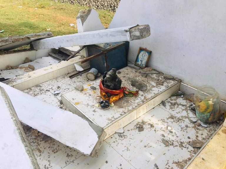 ஏ – 09 நெடுஞ்சாலையில் கொடிகாமத்துக்கும் மிருசுவிலுக்கும் இடைப்பட்ட பகுதியில் சிறிய அளவில் குறித்த பிள்ளையார் ஆலயம் காணப்பட்டது. இந்நிலையில் இன்று காலையில் மக்கள் அவதானித்தபொது ஆலயம் இடிவடைந்து காணப்படுகின்றமை தொடர்பில் கொடிகாமம் காவற்துறையருக்கு தகவல் வழங்கப்பட்டுள்ளது. கொடிகாமம் காவற்துறையினர் விசாரணைகளை மேற்கொண்டுவருகின்றனர்.