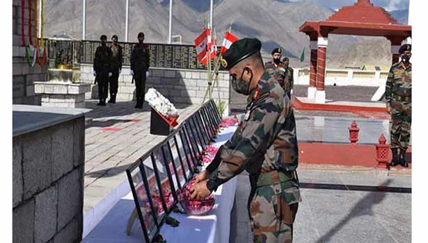 கல்வான்-பள்ளத்தாக்கு மோதலில் வீர மரணம் அடைந்த இந்திய வீரர்களுக்கு காஷ்மீரில் லே பகுதியில் உள்ள 14 கார்ப்ஸ் படைப்பிரிவினர் நினைவஞ்சலி செலுத்தினர். வீர மரணம் அடைந்த வீரர்கள் சேவையாற்றிய ‘பயர் அண்ட் பியூரி கார்ப்ஸ்’ படைப்பிரிவின் கட்டளை அதிகாரி மேஜர் ஜெனரல் ஆகாஷ் கவுசிக்கும், லேயில் அமைந்துள்ள போர் நினைவுச்சின்னத்தில் மலர்வளையம் வைத்து மரியாதை செலுத்தினார்.