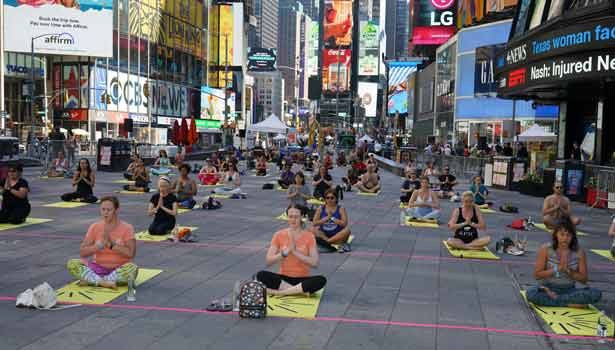சர்வதேச யோகா தினத்தை முன்னிட்டு அமெரிக்காவில் யோகா நிகழ்ச்சி நடந்தது. நியூயார்க் நகரில் உள்ள புகழ்பெற்ற டைம்ஸ் சதுக்கத்தில் நடந்த நிகழ்ச்சியில் சுமார் 3 ஆயிரம் பேர் கலந்து கொண்டு யோகாவில் ஈடுபட்டனர்.