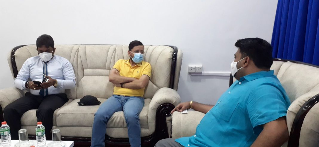 மாவட்ட செயலகத்திற்கு வருகைதந்த உயர்ஸ்தானிகர் முதலில் யாழ் மாவட்ட ஒருங்கிணைப்பு குழு தலைவரின் அலுவலகத்தில், மாவட்ட ஒருங்கிணைப்பு குழுத்தலைவரும், நாடாளுமன்ற குழுக்களின் பிரதி தவிசாளருமான அங்கஜன் இராமநாதனை சந்தித்து கலந்துரையாடியுள்ளார்.