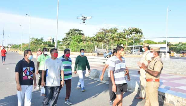 இப்படி கடற்கரை பகுதியில் யாராவது நடமாடுகிறார்களா? என்பதை டிரோன் மூலம் கண்காணித்தனர். இது தொடர்பாக போலீசார் கூறும்போது, “பொதுமக்களின் நலன் கருதி மெரினாவில் நடைபயிற்சிக்கு மட்டுமே அனுமதி அளிக்கப்பட்டுள்ளது. பொதுமக்கள் அதனை உணர்ந்து விழிப்புணர்வோடு செயல்பட வேண்டும். கொரோனா பரவுவதற்கு வழி ஏற்படும். எனவே அஜாக்கிரதையாக இருக்க வேண்டாம் என்றும் தெரிவித்தனர்.