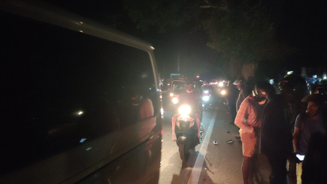 கிளிநொச்சியிலிருந்து வவுனியா நோக்கிய திசையில் பயணித்த டிப்பர் ரக வாகனத்தை அதே திசையில் பயணித்த மற்றொரு டிப்பர் வாகனம் முந்திச் செல்ல முற்பட்டபோது எதிரே வந்த மோட்டார சைக்கிளை மோதியதால் விபத்து நிகழ்ந்துள்ளது.