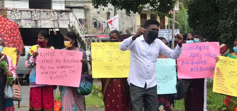 இதன்போது, அத்துமீறிய பெருந்தோட்ட நிறுவனங்களின் செயற்பாடுகள் நிறுத்தப்பட வேண்டும் என சுலோகங்களை ஏந்தி ஆர்ப்பாட்டக்காரர்கள் கோஷமெழுப்பினர்.
