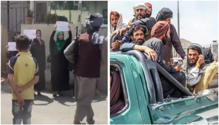 பெண்களுக்கான சுதந்திரத்தை வழங்க வேண்டுமென தாலிபான்களுக்கு மத்தியில் 4 பெண்கள் வீதியில் களமிறங்கி போராடியது அந்நாட்டு மக்களின் கவனத்தை ஈர்த்துள்ளது.