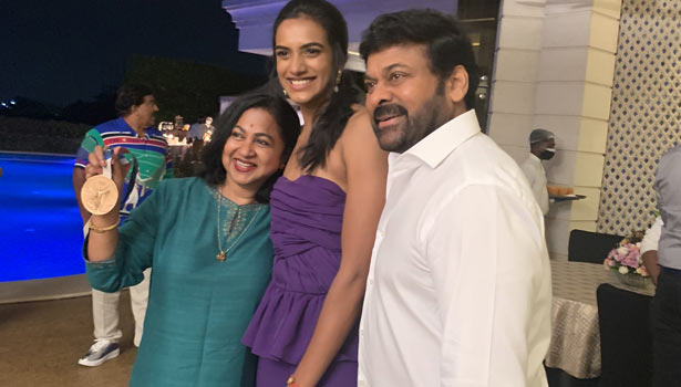 இந்நிலையில், தெலுங்கு திரையுலகில் முன்னணி நடிகராக வலம்வரும் சிரஞ்சீவி, பி.வி.சிந்துவுக்கு விருந்துடன் கூடிய ஒரு பாராட்டு விழாவை நடத்தி உள்ளார். ஐதராபாத்தில் நடைபெற்ற இந்த விழாவிற்கு, சிரஞ்சீவி தனது நண்பர்கள் வட்டாரத்திலிருந்து பலரையும் அழைத்திருந்தார்.